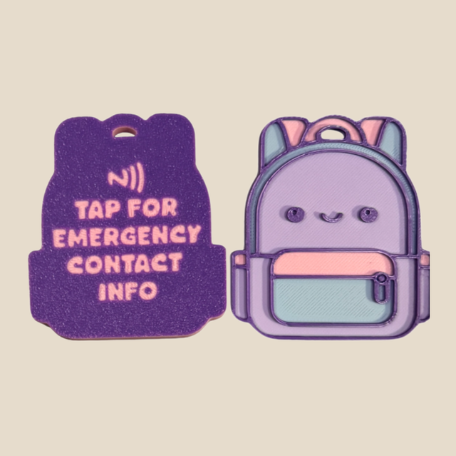 NFC Bag tag to add emergency contact number of the parent to a childs luggage.